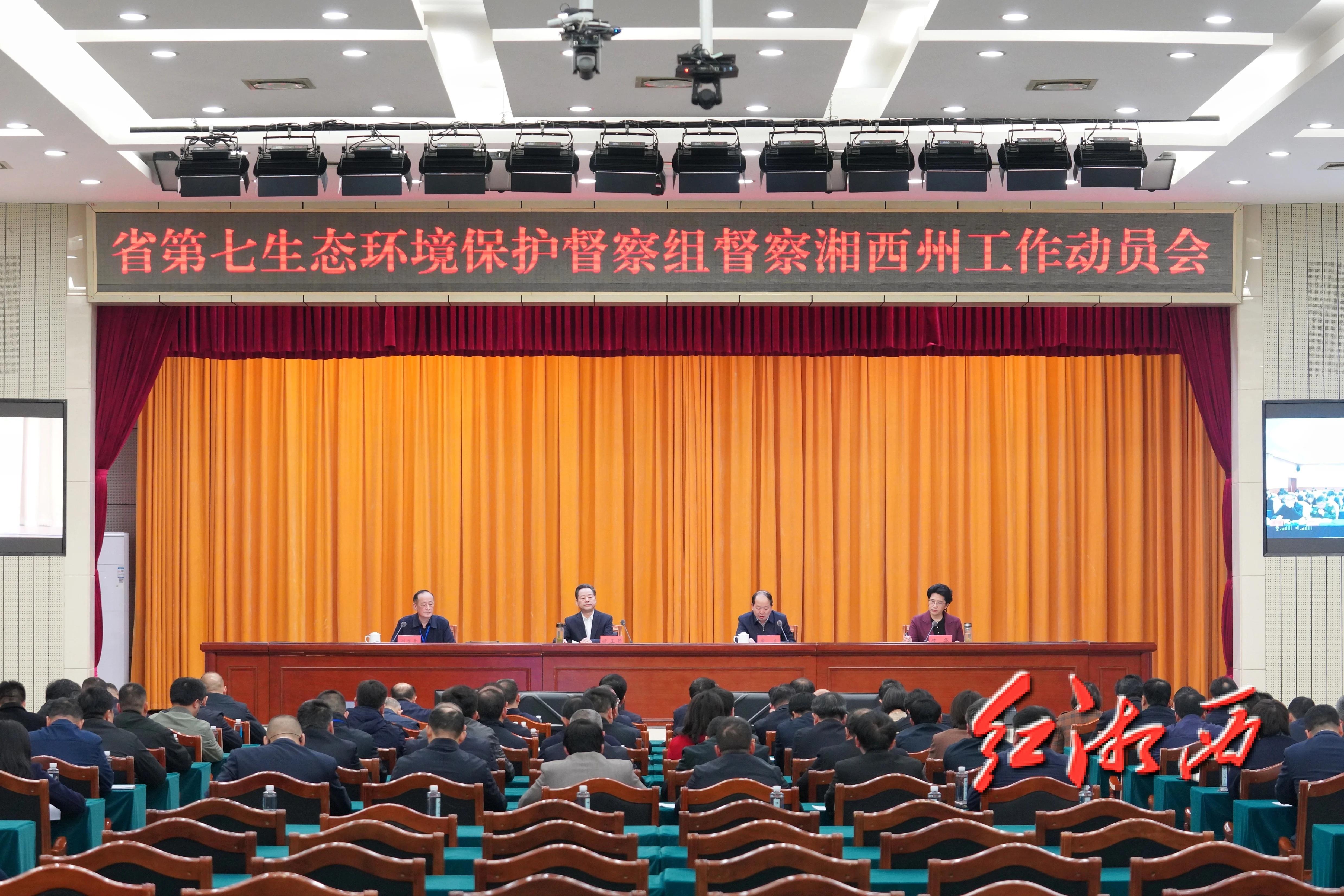 湘西網3月13日訊(周環宣)為全面貫徹落實黨的二十大精神,深入學習貫徹習近平生態文明思想,全面推進美麗湖南建設,加快建設人與自然和諧共生的現代化,經省委、省政府批準,省第七生態環境保護督察組近日進駐湘西州開展生態環境保護督察。3月13日,督察進駐動員會在吉首召開。督察組組長唐勇、副組長劉益貴就做好督察工作分別作了講話,省政協副主席、湘西州委書記虢正貴進行了動員部署。會議由湘西州委副書記、州長陳華主持。