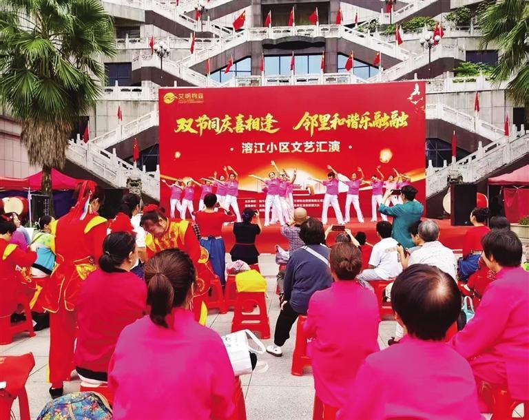 國慶、中秋“雙節(jié)”將至,9月27日,湘西高新區(qū)溶江小區(qū),吉鳳街道牯牛坪社區(qū)與溶江小區(qū)的物業(yè)公司聯(lián)合舉辦文藝匯演,豐富社區(qū)居民精神文化生活,共同歡歡喜喜迎佳節(jié)。 團(tuán)結(jié)報(bào)全媒體記者 李再興 攝