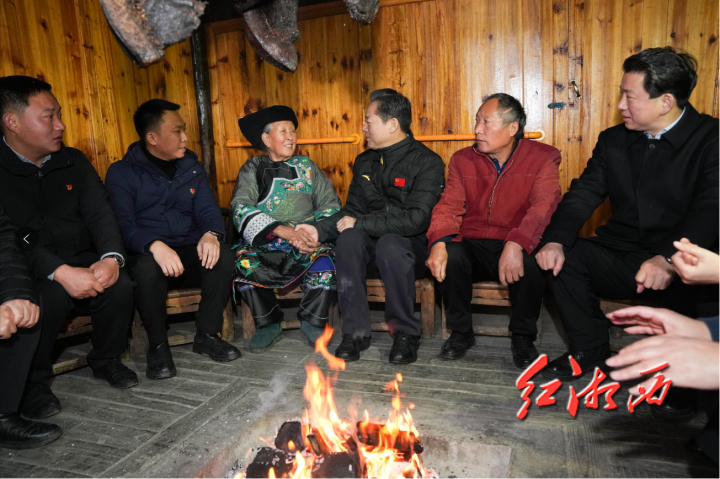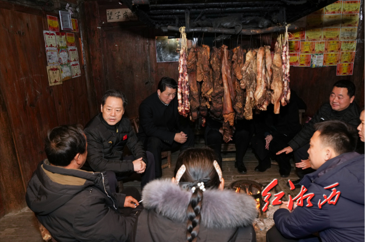 紅紅的火苗在火坑里歡快地跳動(dòng),炕上大塊臘肉和串串香腸在火苗的烘烤下散發(fā)著陣陣誘人香氣,展示著主人家一年的好收成,臘月二十的湘西農(nóng)村,年味漸濃?!拔覀冏哂H戚來(lái)了!”在石欄鎮(zhèn)朋巖村,虢正貴先后來(lái)到聯(lián)系戶龍明高、困難群眾龍樹(shù)文和困難黨員龍遠(yuǎn)上家中,與他們圍坐一團(tuán)拉家常、聊發(fā)展,到房前屋后、廚房菜園實(shí)地查看生活環(huán)境和生活起居情況。虢正貴詳細(xì)詢問(wèn)他們過(guò)去一年經(jīng)濟(jì)收入情況和當(dāng)前生產(chǎn)生活情況、身體情況,聽(tīng)取他們新一年的想法和打算,給他們送上新年的問(wèn)候和祝福,鼓勵(lì)他們堅(jiān)定發(fā)展信心,把日子過(guò)得更加紅火。要求鎮(zhèn)、村以及駐村工作隊(duì)多關(guān)心困難群眾和困難黨員的生產(chǎn)生活,充分發(fā)揮基層黨組織戰(zhàn)斗堡壘作用和黨員先鋒模范作用,帶領(lǐng)村民們走向共同富裕。