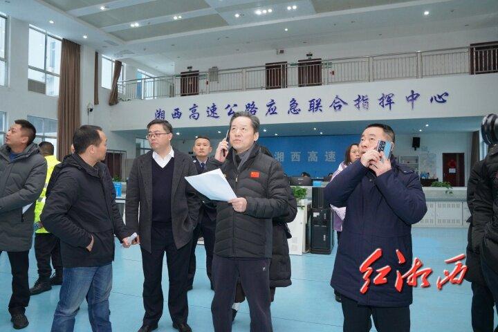 虢正貴在湘西高速公路應急聯合指揮中心調度全州抗擊雨雪冰凍各項工作,關切之情溢于言表。