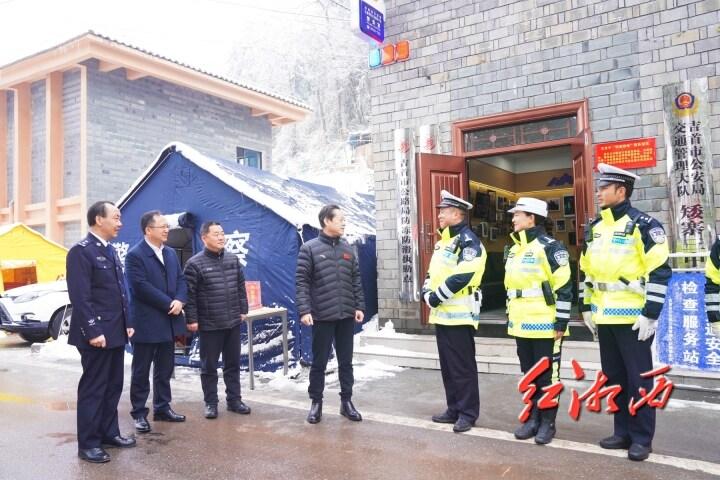 “大家始終堅守崗位,在極其復雜天氣下,確保了這條特殊公路的安全和暢通,真不容易,辛苦了!”來到吉首市公安局交警大隊矮寨中隊,虢正貴看望堅守在矮寨坡頭的公安民警,向他們表達了誠摯的問候和感謝,鼓勵大家值好班、守好路、過好年,希望大家繼續努力,讓“全國模范交警隊”這面金字招牌越擦越亮。