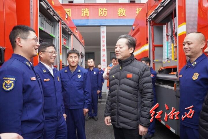 湘西網2月9日訊(全媒體記者 付丹)2月8日,臘月二十九,正值“土家年”,冰雪未融,年味已濃。湘西州委書記虢正貴走訪慰問堅守在一線執勤的公安民警和消防指戰員,為他們送去新春的祝福,并叮囑他們加強風險防范,守住安全底線,確保群眾過上一個溫暖、祥和的春節。