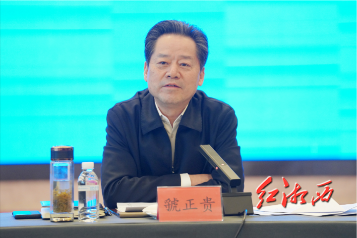 虢正貴強調,要以魚躍龍門的豪情壯志耕耘新的碩果。廣大企業家要在堅守初心中把準創業方向,以大眼光、大格局、大氣魄推進企業高質量發展。在守法經營中不斷發展壯大,凡是觸碰安全生產底線、破壞生態環境、違反廉潔紀律的生產經營堅決不做。在回報社會中實現更大價值,積極履行社會責任,踴躍投身鄉村振興和光彩事業,在艱苦創業路上譜寫更多富而有責、富而有義、富而有愛的精彩故事。