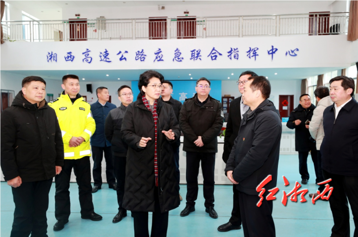 陳華走進湘西綜合交通監測與指揮中心,省高速集團湘西分公司,聽取當前全州公路水路、轄區高速公路應對新一輪低溫雨雪冰凍天氣工作開展情況。通過監控大屏幕,查看重點部位通車條件、通行數量。陳華充分肯定了交通領域應對今年以來低溫雨雪冰凍天氣的處置工作。她說,湘西州交通環境復雜,在幾輪低溫雨雪冰凍天氣的影響下,全州沒有發生大的交通事故、出現長時間的交通堵塞,成績值得肯定,經驗需要推廣。希望大家進一步再接再厲,履職盡責,加強工作聯動,及時、準確發布路況信息,眾志成城、連續作戰除冰保暢,確保全州公路水路、高速公路通暢安全。