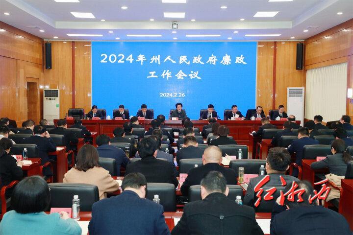 湘西網2月27日訊(全媒體記者 陳海泉)2月26日下午,湘西州政府召開2024年廉政工作電視電話會議,深入學習貫徹習近平總書記關于黨的自我革命的重要思想,全面落實二十屆中央紀委三次全會、國務院第二次廉政工作會議、十二屆省紀委四次全會、省政府廉政工作會議和州紀委四次全會精神,堅定不移深入推進政府黨風廉政建設。州委副書記、州長陳華出席會議并講話。