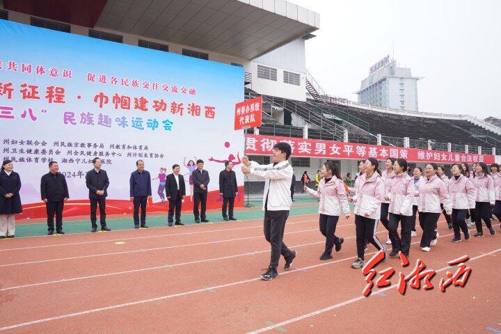 湘西網3月7日訊(全媒體記者李再興 肖穎 通訊員 彭敏)3月6日上午,在第114個“三八”國際婦女節來臨之際,由湘西州婦聯等6個部門聯合主辦的湘西州“跟黨奮進新征程·巾幗建功新湘西”慶“三八”民族趣味運動會在州體育中心舉行。州委書記虢正貴出席并宣布運動會開幕。州委常委、州委組織部部長、州委統戰部部長賈珍文主持開幕式。