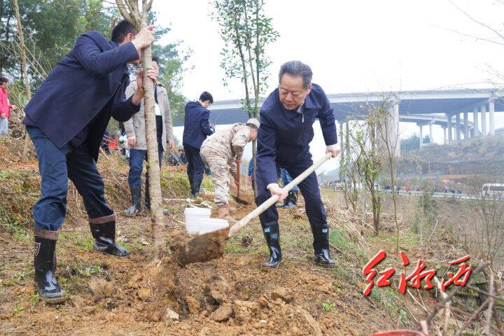 湘西網3月18日訊(全媒體記者 付丹)3月15日上午,湘西州委書記虢正貴,州委副書記、州長陳華等在家州領導來到吉首市曙光村石家寨,與干部群眾一同參加2024年全民義務植樹活動,履行植樹義務,共建美麗湘西。