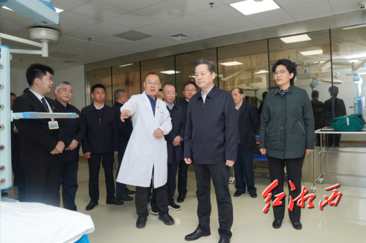 虢正貴實(shí)地了解湘西州人民醫(yī)院(吉首大學(xué)第一附屬醫(yī)院)臨床技能模擬訓(xùn)練中心及醫(yī)院建設(shè)。本組圖片由團(tuán)結(jié)報(bào)全媒體記者劉煒攝