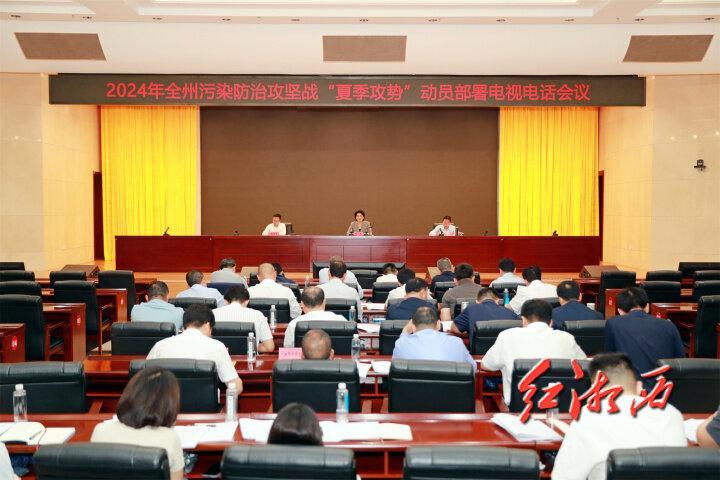 湘西網(wǎng)5月31日訊(全媒體記者 陳海泉)5月30日,2024年全省污染防治攻堅戰(zhàn)“夏季攻勢”動員部署電視電話會結(jié)束后,湘西州委副書記、州長陳華主持召開2024年全州污染防治攻堅戰(zhàn)“夏季攻勢”動員部署電視電話會議。她強(qiáng)調(diào),要進(jìn)一步深化思想,聚焦治理重點(diǎn),迅速行動,精準(zhǔn)推進(jìn),確保如期完成“夏季攻勢”各項(xiàng)任務(wù),堅決打好打贏污染防治攻堅戰(zhàn)。
