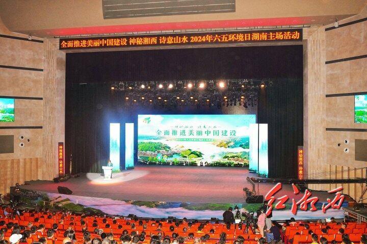 虢正貴代表州委、州政府向參加活動的嘉賓表示歡迎。他表示,湘西州是精準扶貧首倡地,是湖南省唯一同時擁有世界文化遺產、世界地質公園的市州,是美麗中國版圖中的一片詩意山水。生態是湘西最大的優勢,綠色是湘西最美的底色,湘西州將以這次活動為契機,深入學習貫徹習近平總書記考察湖南重要講話和指示精神,錨定“三高四新”美好藍圖,堅持全領域轉型、全方位提升、全地域建設、全社會行動,協同推進生態環境保護和綠色低碳發展,著力繪就生態秀美、環境優美、產業富美、民風淳美、城鄉和美的美麗湘西新畫卷,為建設美麗中國、美麗湖南貢獻更多湘西力量。