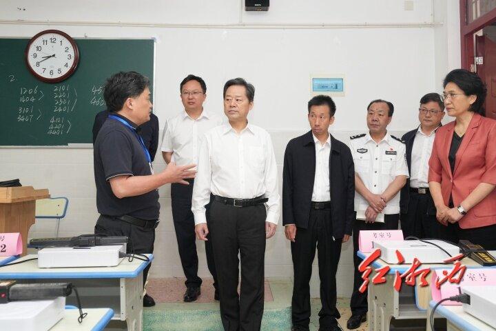 虢正貴、陳華先后到吉首市第一中學(xué)考點、湘西州民族中學(xué)考點,看望慰問在考點值班值守的工作人員,走進(jìn)考場、考務(wù)辦公室、視頻監(jiān)控室、廣播信號室、師生食堂,詳細(xì)檢查考生入場安檢、考場布置、考務(wù)安排、涉考設(shè)備安全運(yùn)行、應(yīng)急處置、安全保密等工作。虢正貴囑咐相關(guān)部門負(fù)責(zé)人,要切實增強(qiáng)責(zé)任感,用心用情做好服務(wù)保障工作,嚴(yán)格考務(wù)規(guī)范,強(qiáng)化考場管控,關(guān)心關(guān)愛考生,營造安全、安靜、安心的考試環(huán)境,確保高考平安有序。虢正貴、陳華祝愿全州每一位考生堅定信心、從容應(yīng)考,發(fā)揮最好水平,考出最好成績。