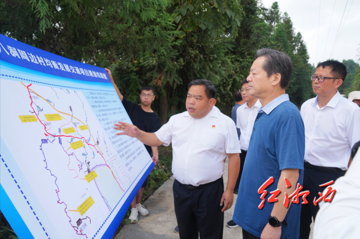 虢正貴在雙龍鎮(zhèn)張刀村察看通村公路提質(zhì)改造進(jìn)度并聽取相關(guān)負(fù)責(zé)人介紹十八洞村周邊村均衡發(fā)展交通項(xiàng)目規(guī)劃線路情況。本組圖片由團(tuán)結(jié)報(bào)全媒體記者 劉煒 攝