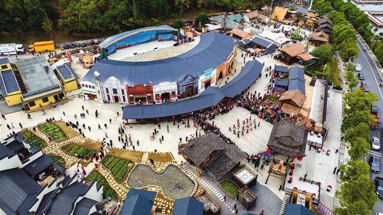 “村廚小村”由34棟具有濃烈地方特色的民居建筑組成,分別代表全國34個省級行政區(qū)。雖名“村廚小村”,實則一座“中國之窗”(無人機照片)。 團結(jié)報全媒體記者 陳昊 攝