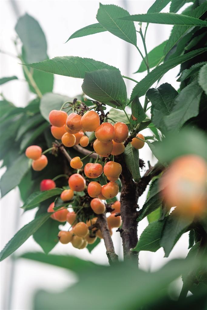 目前,基地共建有12座現代化種植大棚,種植面積24畝,引進俄羅斯8號、美國大紅、美早、薩米脫等四個櫻桃新品種1500棵,通過抖音直播和線下銷售,已實現銷售2000多公斤,實現銷售收入20多萬元。同時,基地還引進甘平柑橘、紅橘、黃橘、美國西柚、泰國蜜柚等室外柑橘類掛果果樹9200棵,其他水果育苗培植區20畝,預計年收入60多萬元,基地每年用工5000多個,帶動附近150余名農民工就業。