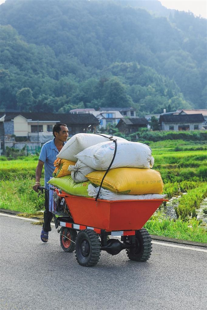 一輛推車,滿載秋實(shí),在蜿蜒的村道寫下豐收的序曲。 團(tuán)結(jié)報(bào)全媒體記者 田華 攝