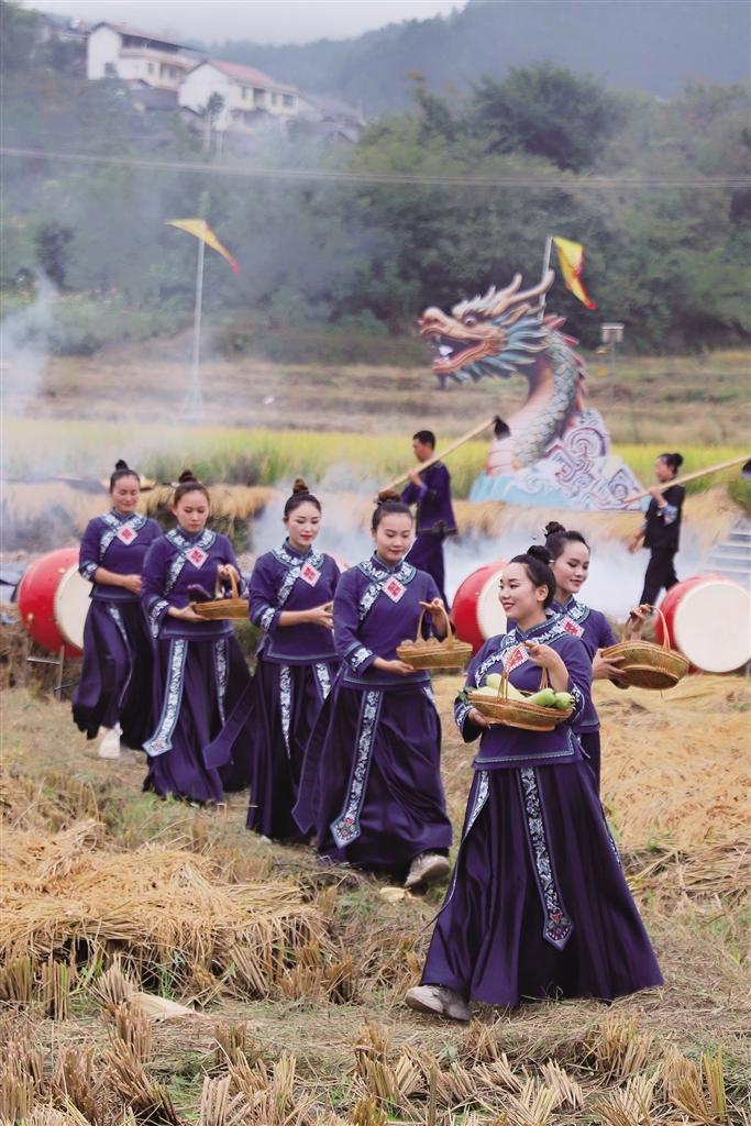 湘西網(wǎng)9月26日訊(全媒體記者 錢紹敏 伍珊珊 實習(xí)生 吳思陽 特約全媒體記者 包倫金)金秋送爽,谷穗飄香。9月23日農(nóng)歷秋分,一場以“弘揚(yáng)農(nóng)耕文化 助力鄉(xiāng)村振興”為主題的土家族曬龍谷暨農(nóng)民豐收節(jié)活動,在永順縣松柏鎮(zhèn)福建村熱烈啟幕,展現(xiàn)了土家族悠久的農(nóng)耕傳統(tǒng)與豐收喜悅,為當(dāng)?shù)厝罕姾退姆接慰头钌狭艘粓霆毦喵攘Φ拿褡逦幕⒀纭?/p>