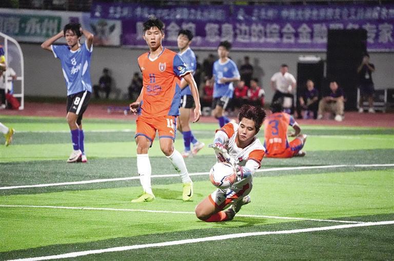 比賽第94分鐘,劉宇陽撲住永州隊的最后一腳攻門,對方球員遺憾地雙手抱頭,表情充滿絕望。 團結(jié)報全媒體記者 宿中元 攝