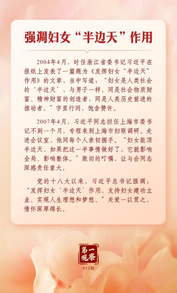 習近平總書記始終心系婦女事業發展。在全球婦女峰會即將召開之際,讓我們一道深刻體悟這份一以貫之的牽掛與重視。