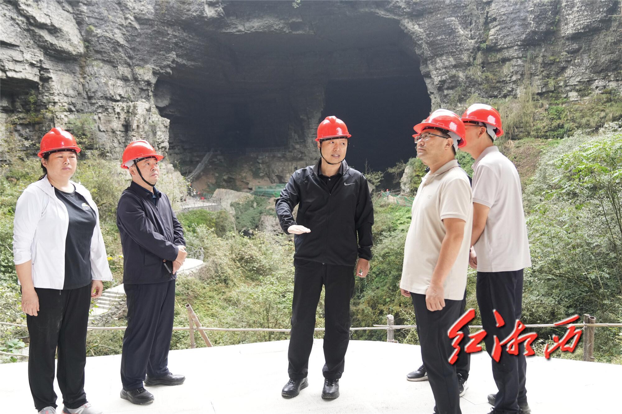 劉濤先后到了八面山自生橋景點、里耶古城(秦簡)博物館、烏龍山大峽谷溶洞景區等文旅項目現場實地考察,并參觀了咱果鄉油桐史館。在詳細了解各項目規劃建設、文物保護及安全管理等情況后,他強調,龍山縣要依托生態與文化資源優勢,以文旅產業為牽引,以特色農業為支撐,構建互促共進的產業發展格局,形成以旅促農、以旅富民的長效機制,扎實推進鄉村全面振興。要全面提升文旅產業發展水平,堅持人與自然和諧共生,所有建設項目必須與自然環境相協調,嚴格管控施工過程,最大限度保持生態原貌。要注重文化傳承,在文物修繕和景區建設中遵循歷史脈絡,真實還原歷史風貌,讓文物說話、讓歷史鮮活。要強化安全管理,健全安全生產責任體系,重點抓好施工安全、消防安全和旅游設施安全,完善應急預案。要創新開發模式,特別是溶洞等特殊景觀資源,在保護優先的前提下科學規劃,打造差異化旅游產品。