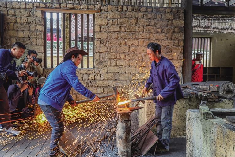 惹巴拉景區(qū)打鐵花非遺展演。 團(tuán)結(jié)報(bào)全媒體記者 胡承鼎 攝