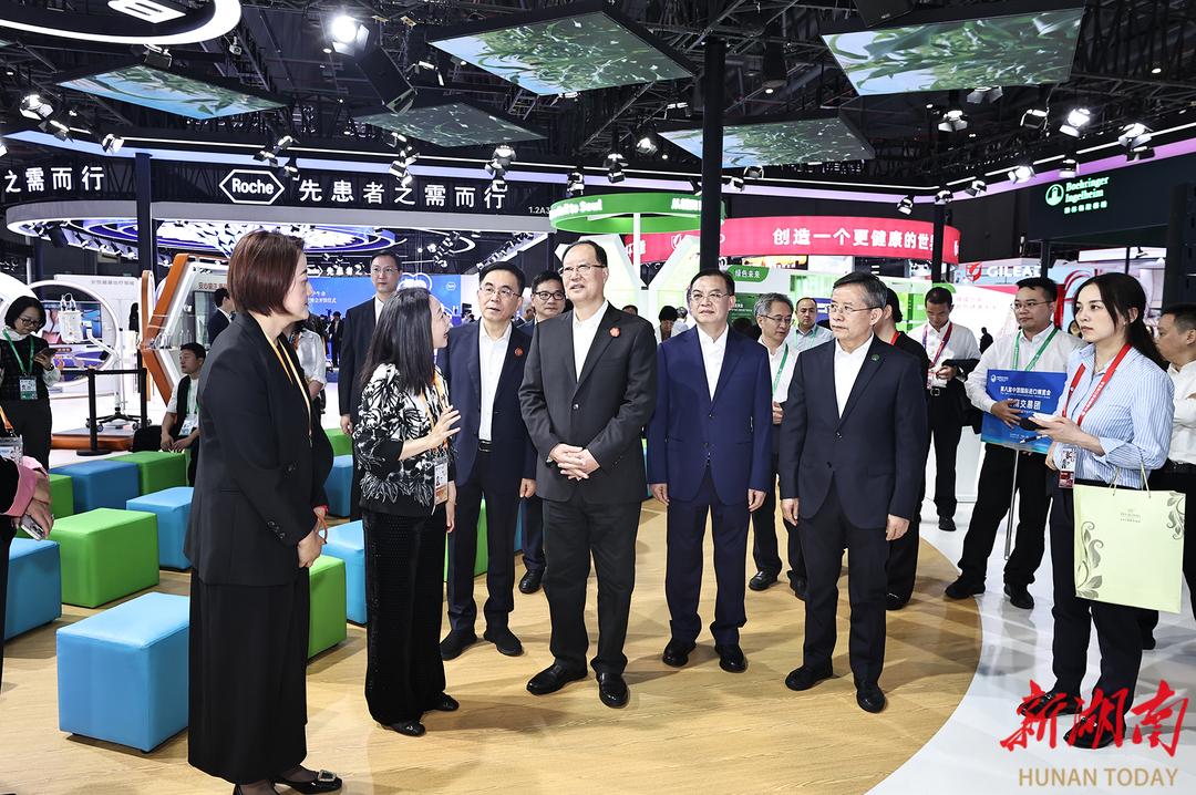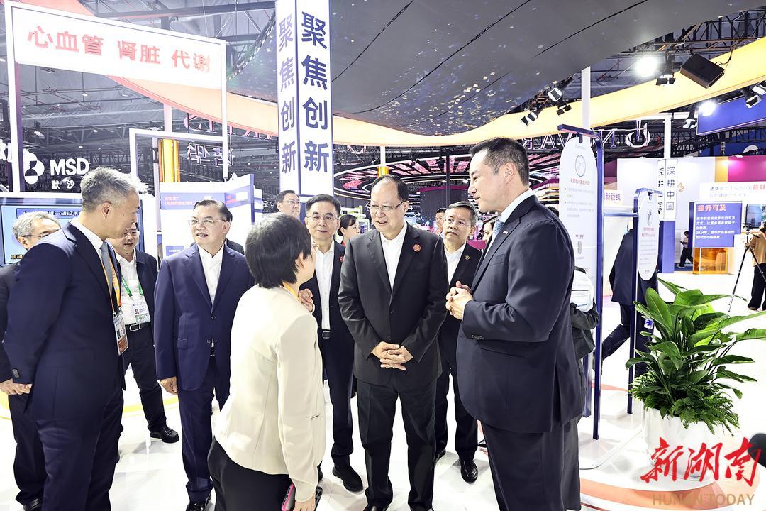 在醫療器械及醫藥保健展區,毛偉明一行先后參觀了飛利浦、諾和諾德、諾華、拜耳等企業展臺,了解新技術、新產品、新服務,現場推介湖南投資機遇。他說,生物醫藥與醫療器械產業是湖南13條重點推進產業鏈之一。誠邀大家來湘共促技術變革、共拓產業空間,與湖南高質量發展同頻共振、在未來賽道攜手奔跑。
