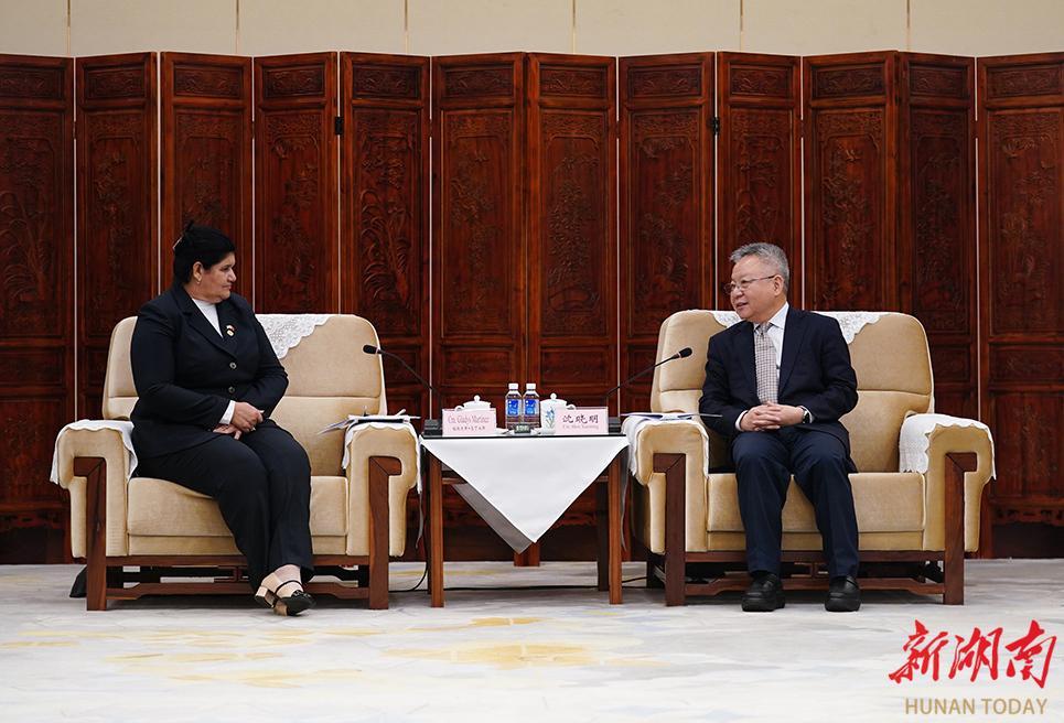 沈曉明代表省委、省政府對代表團(tuán)一行表示歡迎。他說,近年來,在兩國元首戰(zhàn)略引領(lǐng)下,湖南與古巴交流頻繁,黨政交往更加密切,互學(xué)互鑒不斷深入,農(nóng)業(yè)、生物醫(yī)藥等領(lǐng)域合作積極推進(jìn),取得豐碩成果。希望雙方在良好合作基礎(chǔ)上,進(jìn)一步深化拓展在文化旅游、新能源、信息通訊等領(lǐng)域的務(wù)實(shí)合作,更好造福兩地人民。
