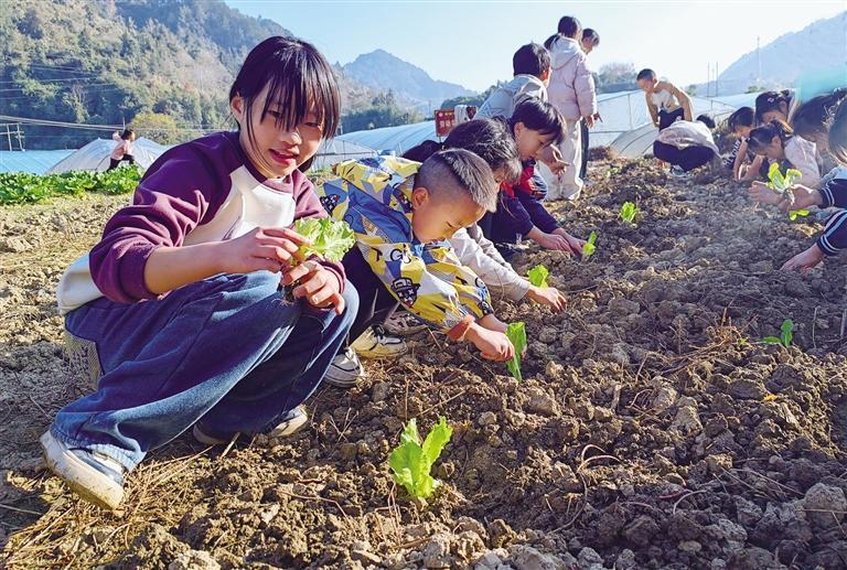 近日,吉首市寨陽小學(xué)勞動(dòng)實(shí)踐基地,學(xué)生們正在揮鋤翻土整地,移栽白菜。近來,該校關(guān)工委依托特色校園勞動(dòng)實(shí)踐基地,開展種植瓜果、蔬菜等系列實(shí)踐活動(dòng),讓學(xué)生從小在實(shí)踐中感受勞動(dòng)的艱辛和樂趣,學(xué)會(huì)勞動(dòng)技能,茁壯成長(zhǎng)。 高求君 姚方 攝