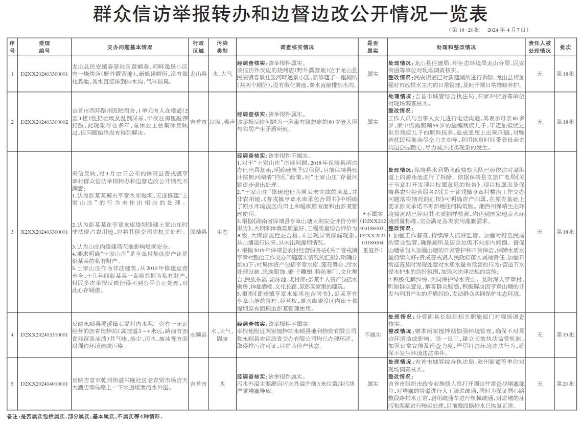 群眾信訪舉報轉辦和邊督邊改公開情況一覽表(4月7日)