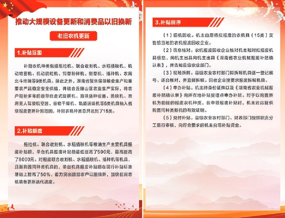 湘西州推動(dòng)大規(guī)模設(shè)備更新和消費(fèi)品以舊換新:老舊農(nóng)機(jī)更新